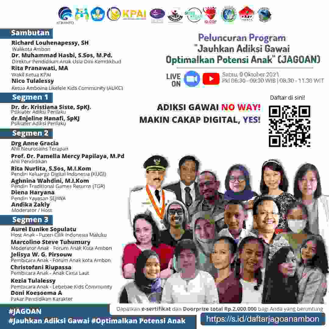 Yayasan Sejiwa Luncurkan Kampanye dan Program “Jauhkan Adiksi Gawai, Optimalkan Potensi Anak” (JAGOAN) di Kota Musik Ambon, Maluku.
