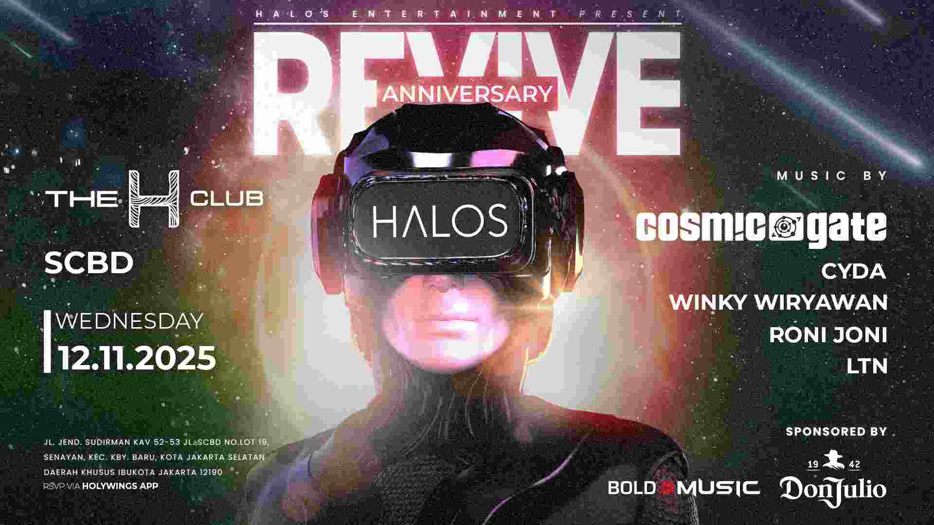 Detail event Revive 2nd Anniversary akan berlangsung 12 November 2025 yang berlokasi di The H Club SCBD, Jakarta. Dibuka pada jam 20.00 WIB