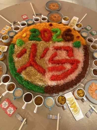 Prasmanan Tahun Baru Imlek menampilkan Prawn and Abalone in H-12 Szechuan Sauce, Duck Soup with Salted Cabbage and Tofu, Stir-Fried Tenderloin Beef with Ginger and Truffle, Roasted Peking Duck, handcrafted dim sum, Laksa, Singaporean Chili King Crab, Braised King Lobster, dan Prosperity Toss Salad (Yu Sheng).