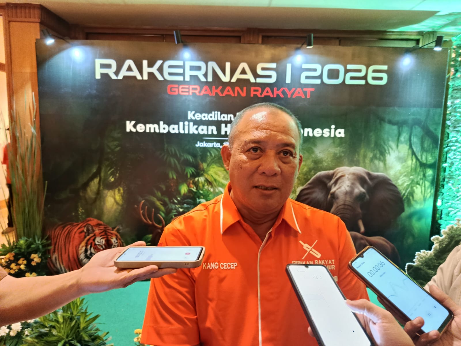 Jakarta — Ketua Dewan Penasehat DPW Gerakan Rakyat Jawa Timur, Cecep Muhammad Yasin, menghadiri Rapat Kerja Nasional (Rakernas) I Tahun 2026 Gerakan Rakyat yang digelar di Hotel Aryaduta Jakarta, Sabtu (17/1/2026). Rakernas perdana ini mengusung tema “Keadilan Ekologis: Kembalikan Hutan Indonesia”, sebagai penegasan komitmen organisasi terhadap isu lingkungan dan keberlanjutan.