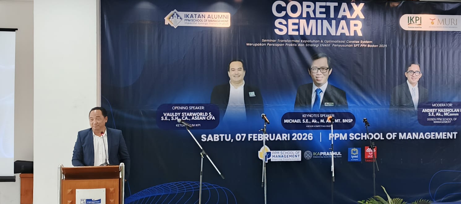 Dalam rangka mendukung Program Asta Cita Presiden Prabowo serta meningkatkan pemahaman, kesadaran, dan kepatuhan perpajakan melalui edukasi tentang peraturan terbaru, cara penghitungan serta pentingnya pajak untuk pembangunan, Ikatan Alumni PPM School of Management CIKA PPM) mengadakan seminar. Yaitu Seminar Transformasi Kepatuhan dan Optimalisasi Coretax System. Seminar ini diadakan dengan menggandeng Ikatan Konsultan Pajak Indonesia CIKPI), Perhimpunan Indonesia Tionghoa (INTI) Tangsel serta Sekolah Bisnis (Prasetiya Mulya & IPMI). Para peserta seminar adalah aparatur pemerintah, pelaku usaha dan generasi muda dengan harapan mereka menjadi wajib pajak yang profesional dan taat hukum.