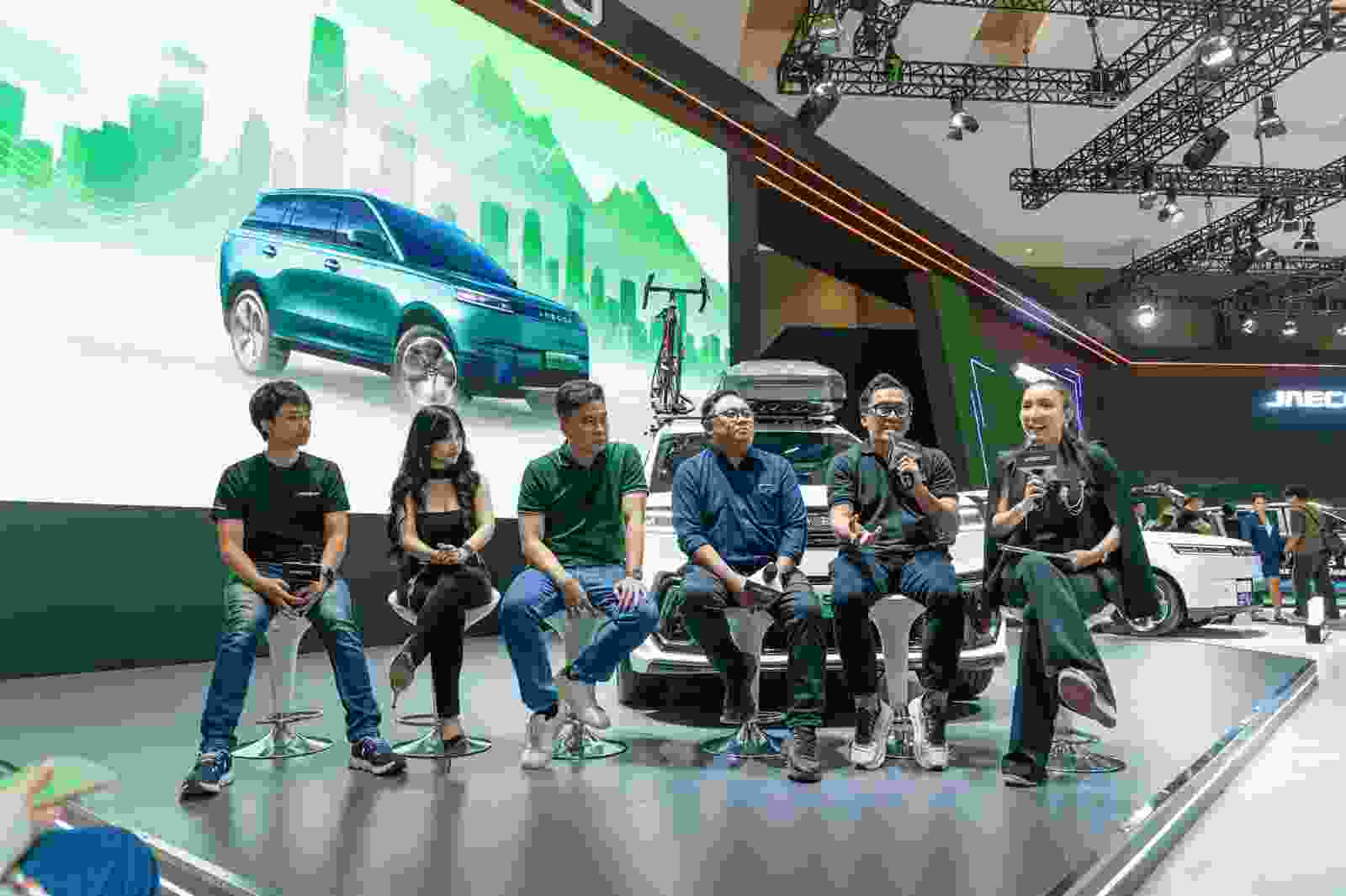Di booth JAECOO, pengunjung dapat mengeksplorasi dua konsep desain J5 EV yang telah dimodifikasi sebagai inspirasi pengembangan. Pengunjung dapat mengikuti survei interaktif untuk memilih elemen desain favorit, termasuk opsi personalisasi eksterior seperti body kit, serta pengembangan fitur pendukung kenyamanan seperti merk ban, pilihan warna one tone dan two tone, desain velg, dan tampilan speedometer.