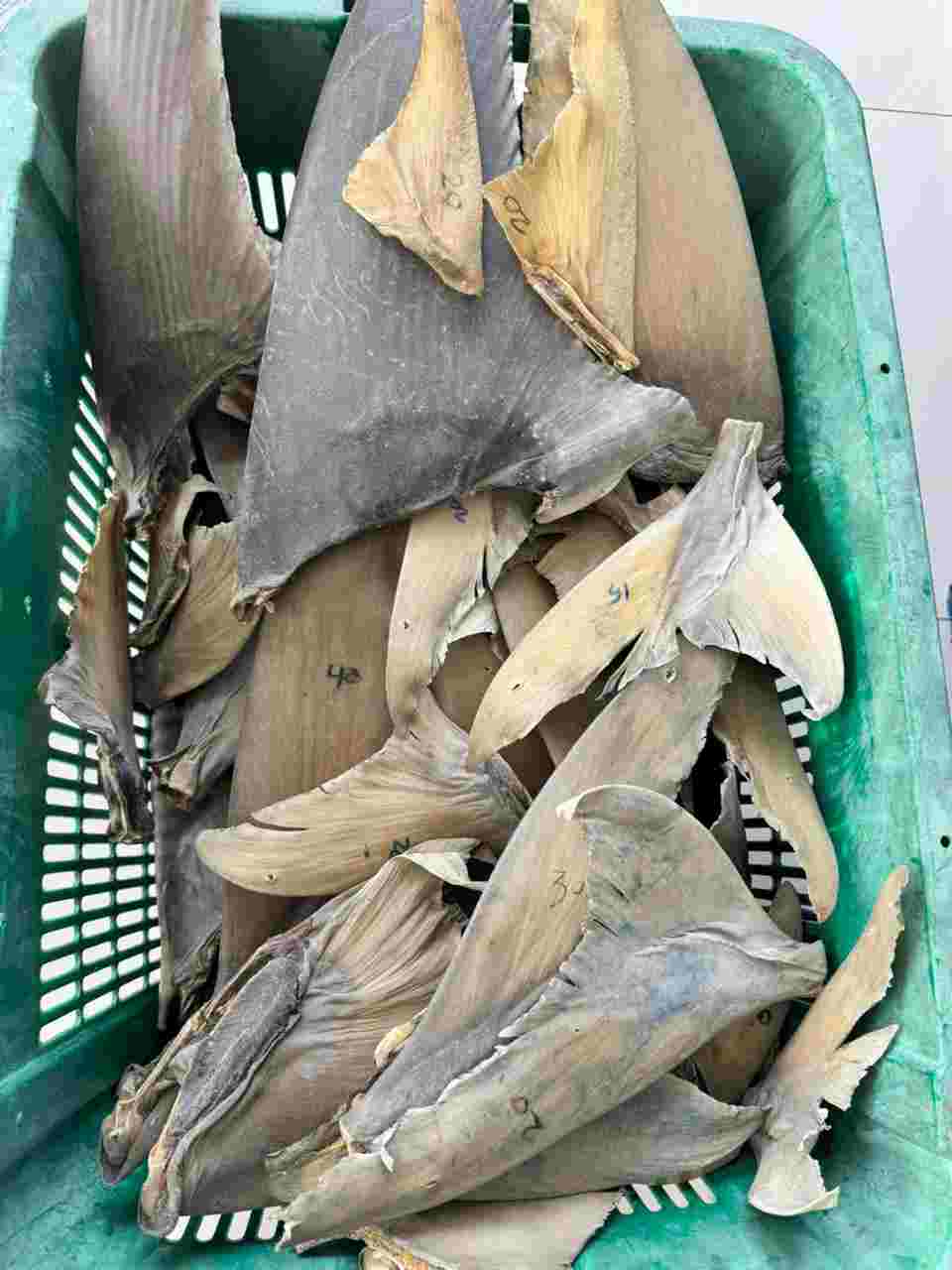 Total 34,35 kg sirip ikan hiu dengan nilai 37,8 juta rupiah yang akan dikirim, terdiri dari 16,25 kg dari hiu kerbau atau _Carcharhinus leucas_ ; 9,55 kg dari hiu pari lontar atau _Rhynchobatus australiae_ ; 2,95 kg dari hiu pari kikir atau _Glaucostegus typus_ ; 2,75 kg dari hiu kejen atau _Carcharhinus limbatus_ ; 2,40 kg dari hiu tenggiri atau _Galeocerdo cuvier_ dan ; 0,45 kg dari hiu kacang atau _Chaenogaleus macrostoma_.
