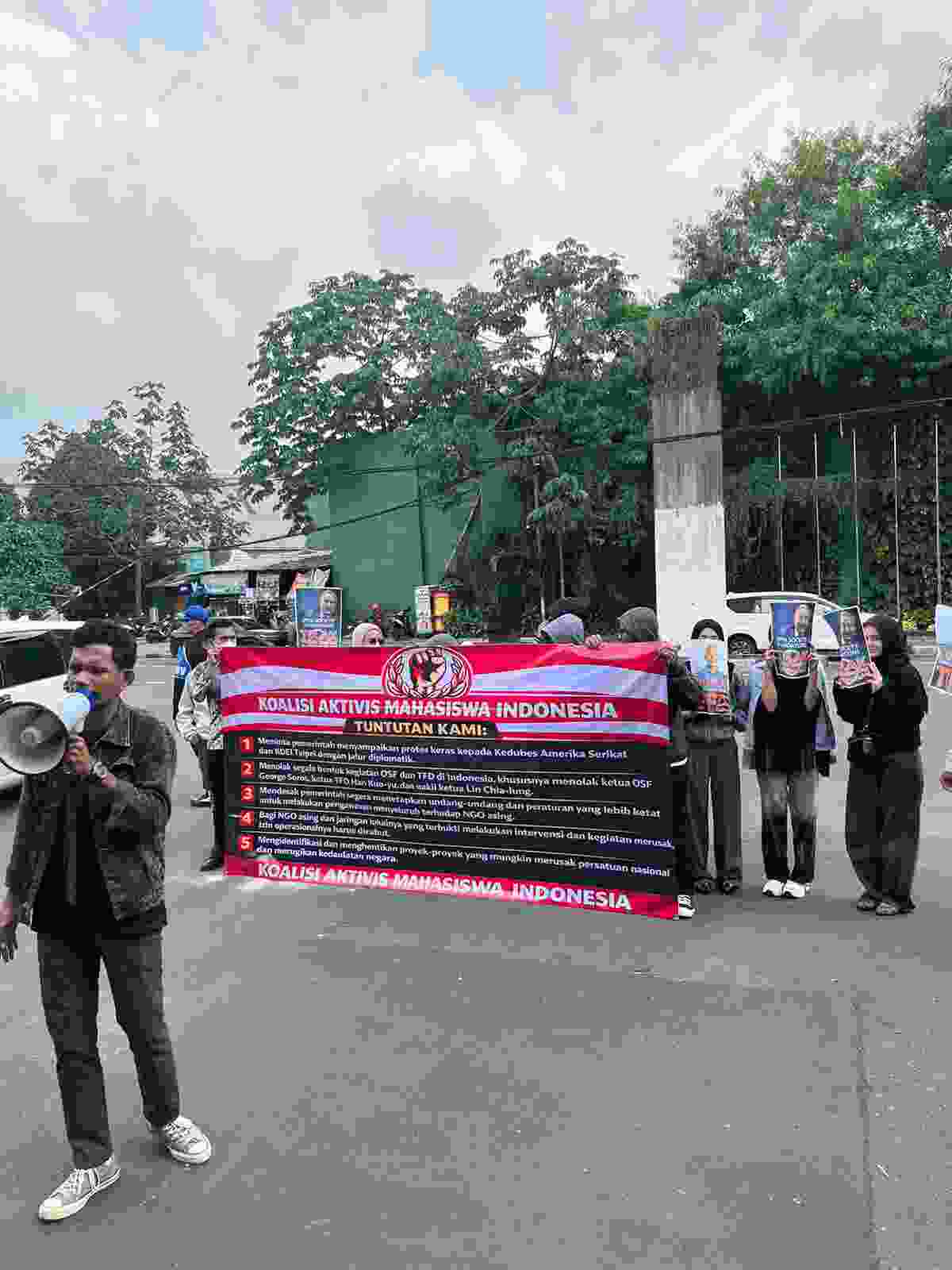 Roberto dan Usman selaku Kordinator Aksi menggelar Aksi Unjuk Rasa di Gedung DPR – RI untuk mendesak pemerintah memperketat aturan terkait organisasi Asing yang bergerak di Indonesia .