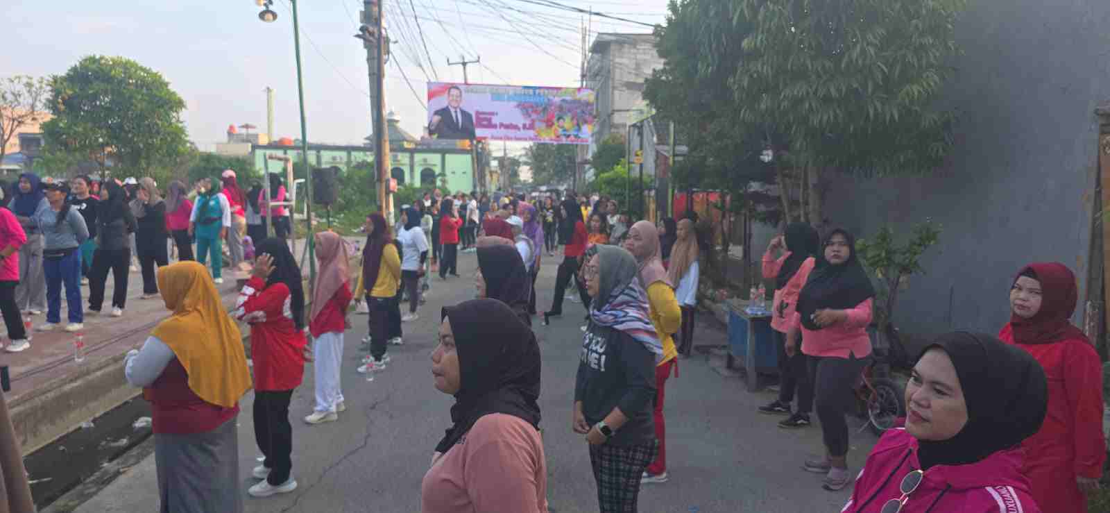 Calon Kepala Desa Samudra Jaya, *Binson Purba*, menggelar kegiatan senam kesehatan massal yang melibatkan ratusan warga di wilayah Samudra jaya, Bekasi utara pada Minggu (19/04/2026).
