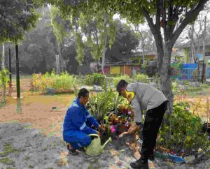 Polsek Kepulauan Seribu Utara dan Warga Bersatu Tanam Pohon untuk Reduksi Polusi Udara