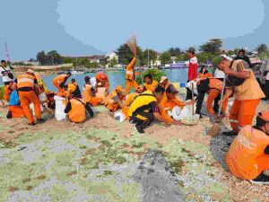 Bhabinkamtibmas Polres Kepulauan Seribu Bergabung dalam Aksi Bakti Bersama untuk Bersihkan Pulau Pramuka Menghadapi Musim Penghujan