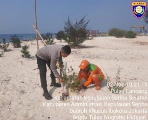 Polsek Kepulauan Seribu Selatan, Turut Gencar Bersama Warga Tanam Pohon untuk Menanggulangi Polusi Udara