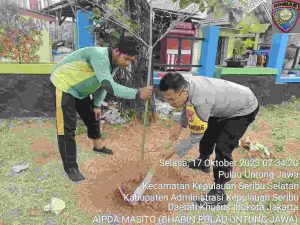 Bhabinkamtibmas Pulau Untung Jawa, Aipda Masito, Giat Tanam Pohon untuk Bersihkan Udara dan Hijaukan Lingkungan