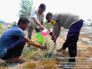 Polsek Kepulauan Seribu Utara dan Warga Bersatu Menanam Pohon untuk Bersihkan Udara