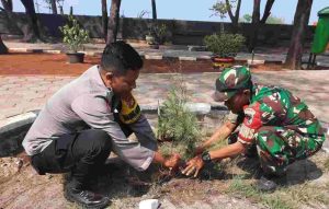Polsek Kepulauan Seribu Selatan dan TNI Bersama Warga Tanam Pohon untuk Kurangi Polusi Udara di Pulau Tidung dan Pulau Lancang