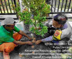 Polsek Kepulauan Seribu Selatan dan Warga Bersatu Tanam Pohon untuk Bersihkan Udara