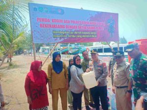 Kapolres Kepulauan Seribu menyerahkan secara simbolis Air Bersih bagi Warga Kepulauan Seribu dalam Kegiatan Bakti Sosial.