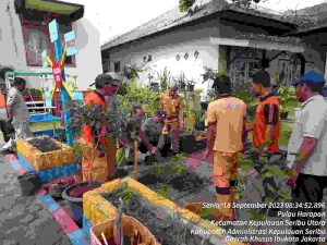 Bhabinkamtibmas Pulau Harapan dan Pemda Kolaborasi Tanam Pohon untuk Bersihkan Udara