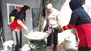 Kapolres Metro Jakut Bantu Masak di Dapur Umum Korban Kebakaran Kapuk Muara