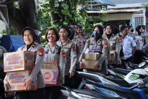 Polwan Bantu Warga Terdampak Banjir di Kebon Jeruk, Bagikan Sembako dan Layanan Kesehatan