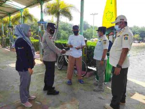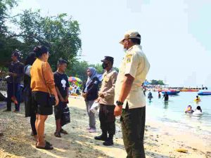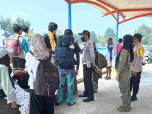 Gelar Patroli Jalan Kaki, Polsek Kep Seribu Selatan Sampaikan Imbauan ProKes dan Keselamatan Permainan Air