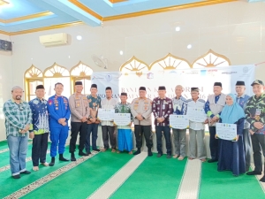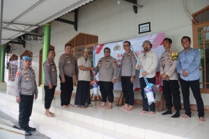 Kapolres Kepulauan Seribu Gelar Bakti Religi di Masjid Al Hidayah Pulau Harapan, Serahkan Bantuan Alat Kebersihan