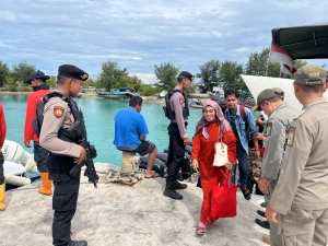 Polisi Baik Bantu Penumpang Turun Kapal, Polsek Kepulauan Seribu Utara Tegaskan Pengamanan Dermaga Cegah Sajam, Narkoba dan Miras