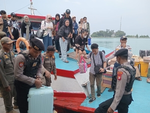 Polisi Baik Polsek Kepulauan Seribu Utara Bantu Penumpang Turun dari Kapal, Wujudkan Pengamanan Humanis di Dermaga
