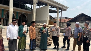 POLRES METRO BEKASI PEDULI TEMPAT IBADAH, SALURKAN BANTUAN UNTUK MASJID JAMI’ DARUS SA’ADAH KEDUNGWARINGIN
