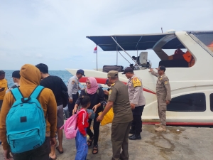 Polisi Baik Polsek Kepulauan Seribu Utara Bantu Penumpang Turun dari Kapal, Ciptakan Rasa Aman di Dermaga