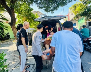 Anggota Polres Kepulauan Seribu Bripka Agus Setiawan Bantu Lansia Sakit, Segera Evakuasi ke RS Koja dengan Ambulans Polres