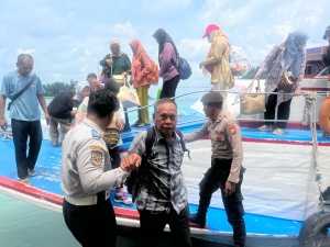 Polisi Baik dan Humanis, Anggota Polsek Kepulauan Seribu Utara Bantu Penumpang Turun Kapal di Dermaga Pulau Kelapa