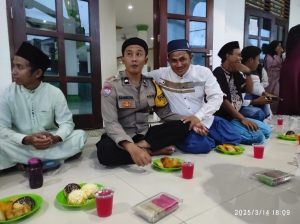 Bhabinkamtibmas Pulau Kelapa Hadiri Santunan Anak Yatim dan Buka Bersama di Masjid Jami Al-Falah