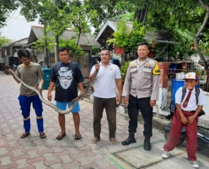 Polisi Baik! Bhabinkamtibmas Pulau Lancang Bersama Warga Evakuasi Ular Sanca 2,5 Meter