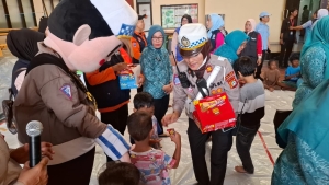 Ditlantas Polda Metro Jaya bersama Polres Metro Jakarta Pusat Gelar Trauma Healing untuk Korban Kebakaran di Kebon Kosong
