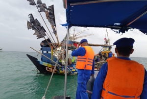 Patroli Satpolairud Polres Kepulauan Seribu dengan KP. VII-40-203 Himbau Nelayan Waspada Cuaca Buruk