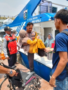 Bhabinkamtibmas Pulau Sabira Tunjukkan Kepedulian Bantu Lansia Turun dari Kapal