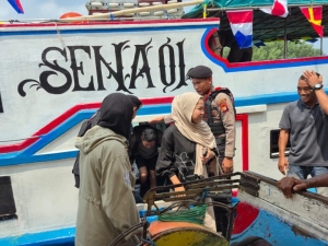 Polisi Humanis Bantu Penumpang Turun dari Kapal, Cegah Peredaran Sajam, Narkoba, dan Miras di Dermaga Kepulauan Seribu Utara